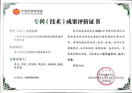 近日,中國能源協會能源行業(yè)高價值專利及技術成果轉化典型案例征集活動傳來捷報——東方自控報送的多項專利成果憑借“技術突破性強、行業(yè)引領性高、成果轉化效益顯著”的核心優(yōu)勢,成功獲評能源行業(yè)高價值(技術)成果!這份權威認可是對東方自控深耕能源電力裝備領域、持續(xù)攻堅關鍵核心技術的實力印證,也為推動能源電力行業(yè)綠色低碳轉型、實現可持續(xù)發(fā)展提供了強有力的技術支撐和實踐范例。汽輪機高壓遮斷裝置 給機組裝上“智...